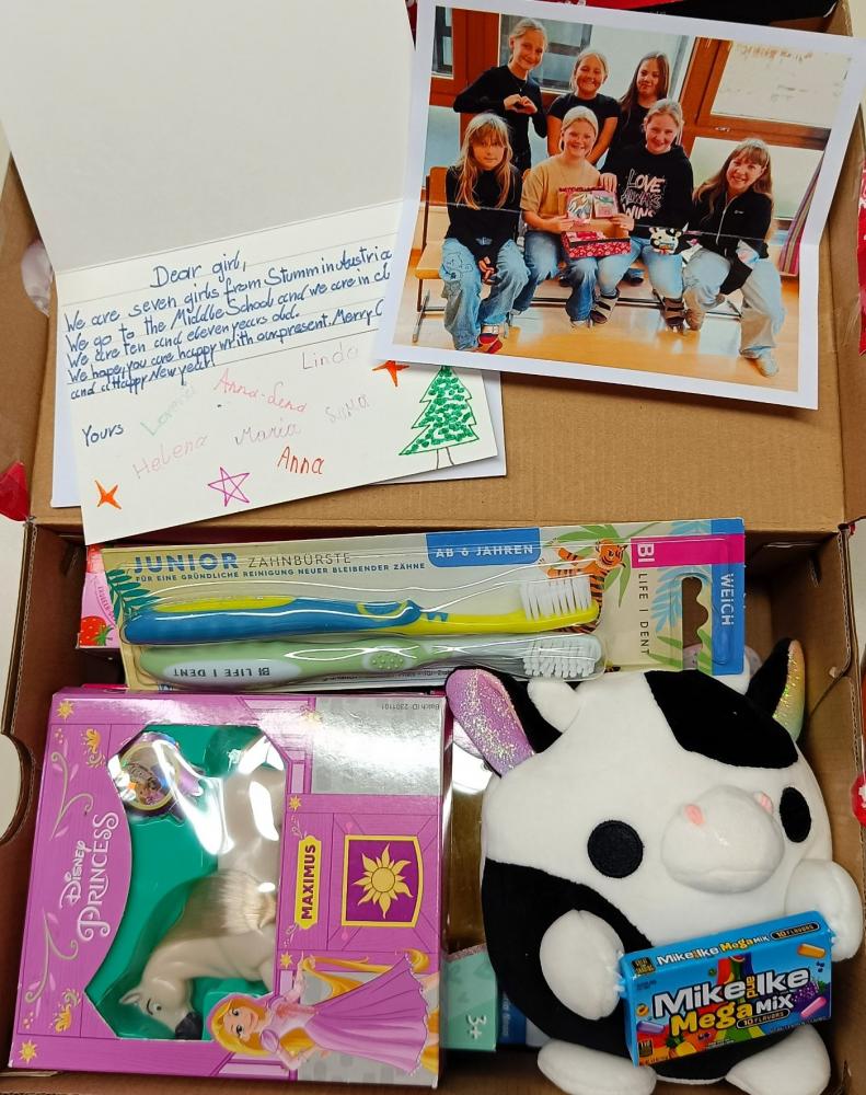 Gemeinsam mit ihrer Klassenvorständin Bianka Pfister packten sie schließlich vier liebevoll gestaltete Schuhkartons mit Foto und Grußkarte für Kinder in Ländern, in denen Weihnachtsgeschenke keine Selbstverständlichkeit sind.